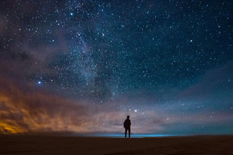 星空下一个人的图片