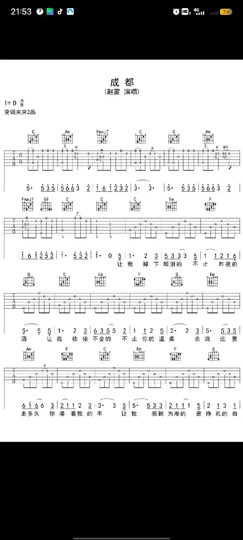 成都-原版吉他谱d调六线pdf谱吉他谱-虫虫吉他谱免费下载