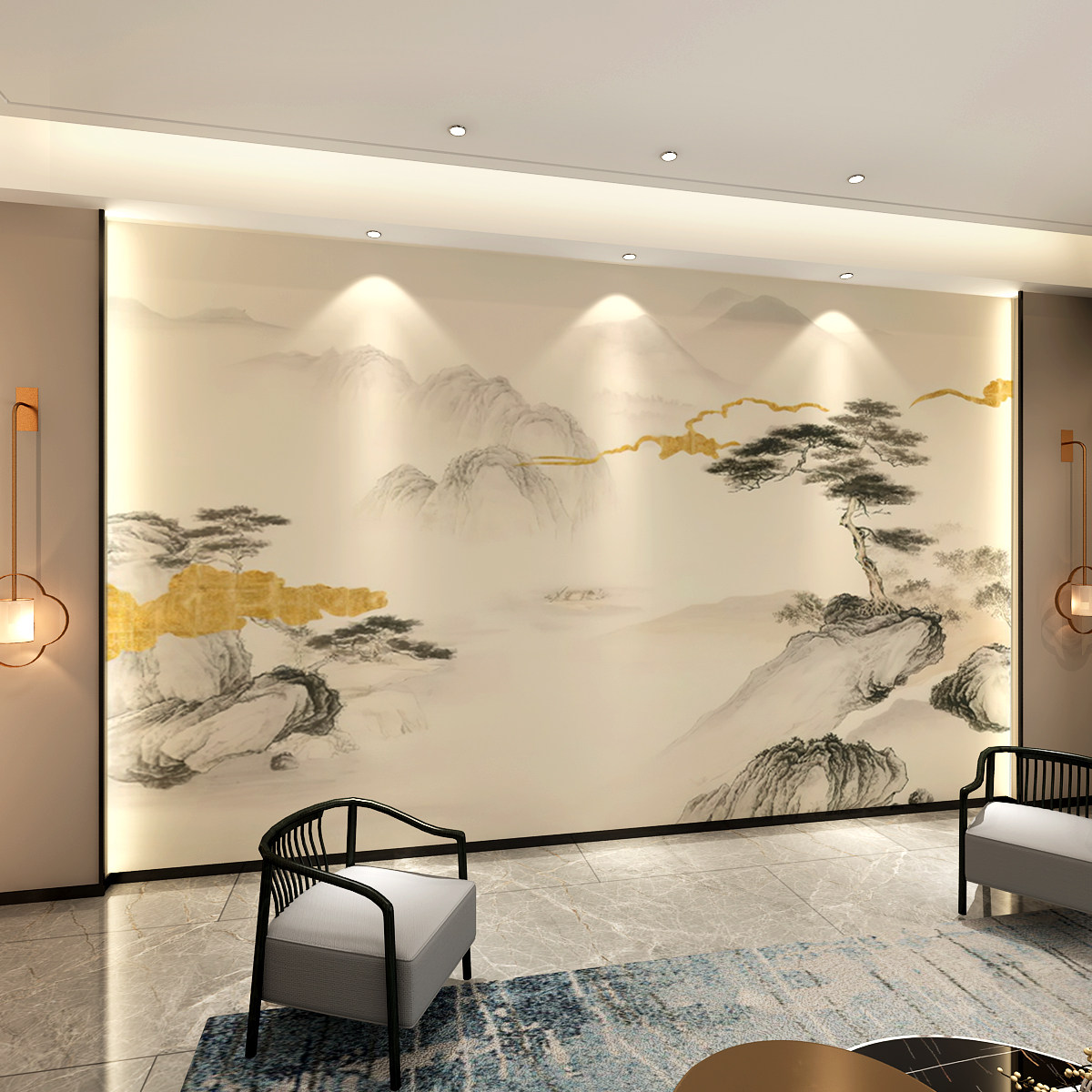 多款新中式大气山水电视背景墙壁纸沙发墙布