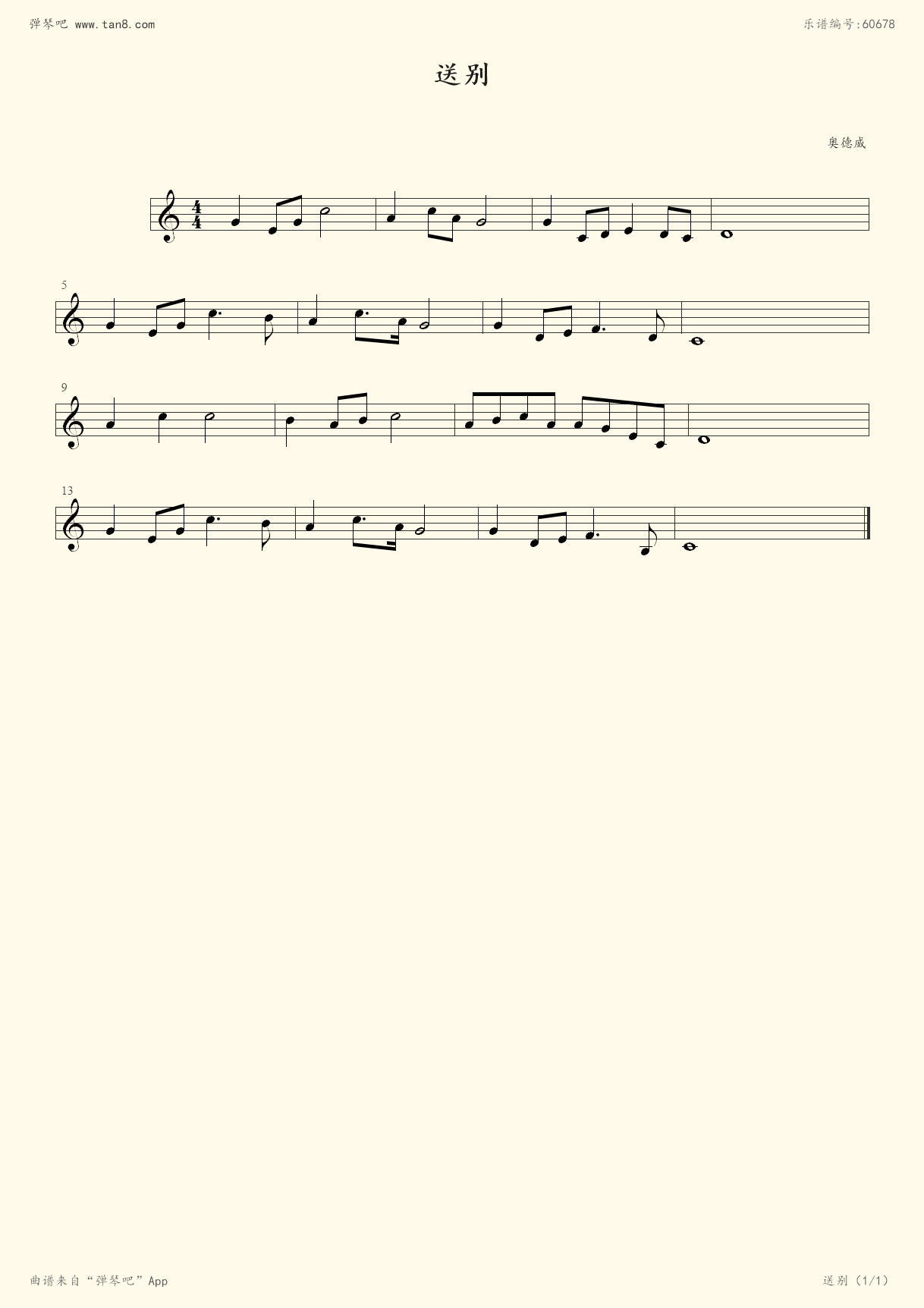 送别简谱五线谱