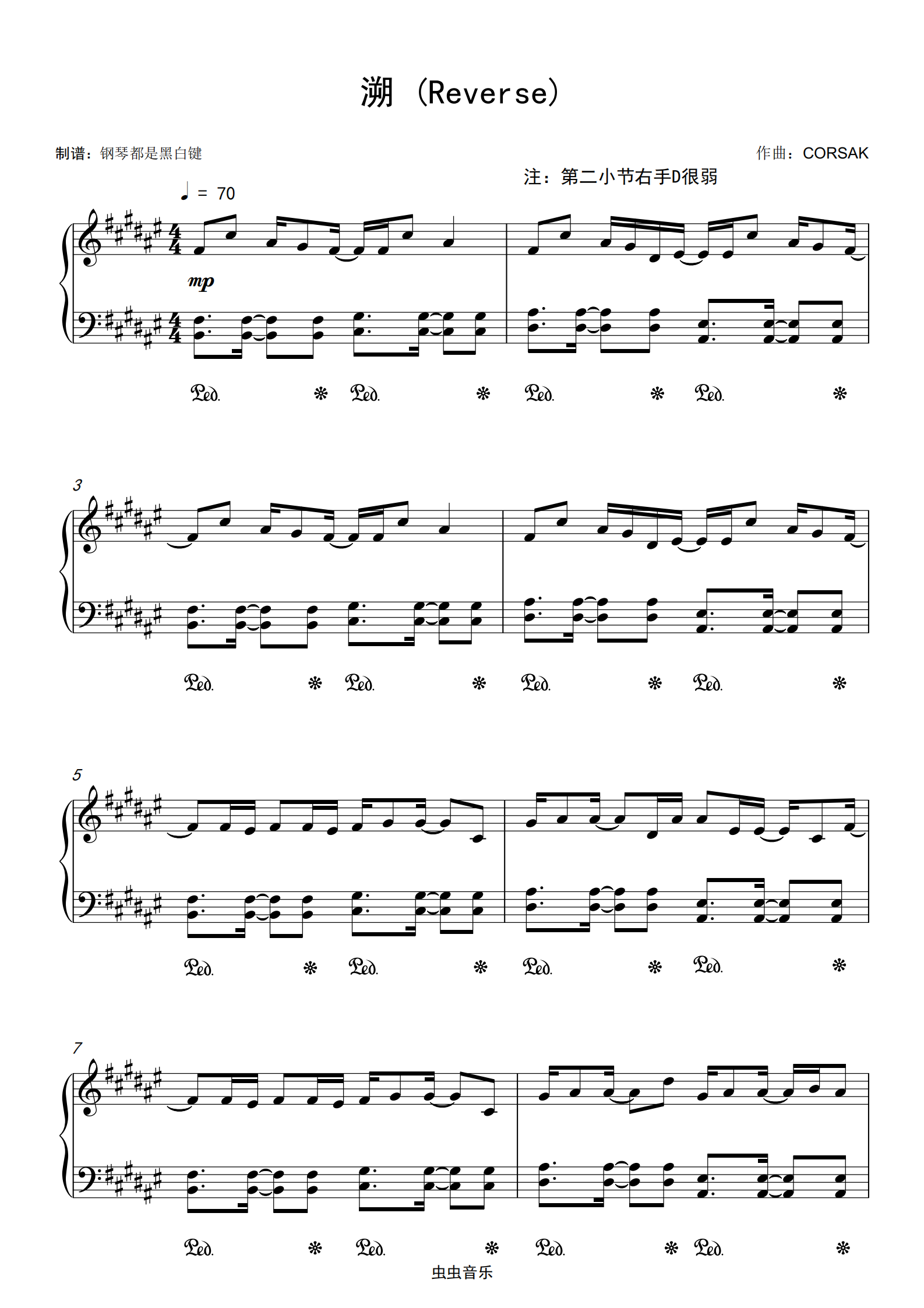 《溯reverse》(公式化伴奏 段落优化,抖音热播)钢琴谱-虫虫钢琴