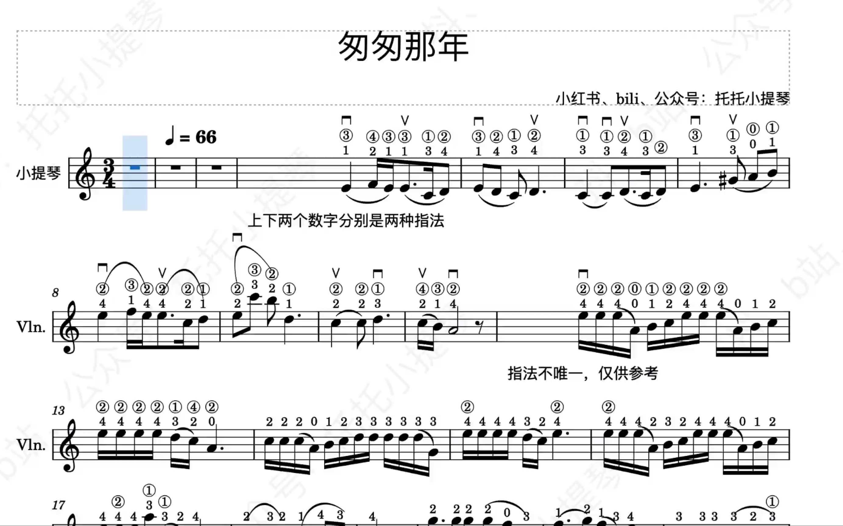 匆匆那年 小提琴谱 指法 弓法 纯钢琴伴奏 托托小提琴自制