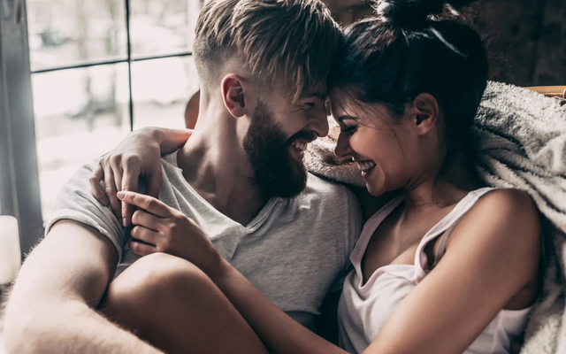 亲密的青年情侣,男人,女人,床,中国,幸福,两个人