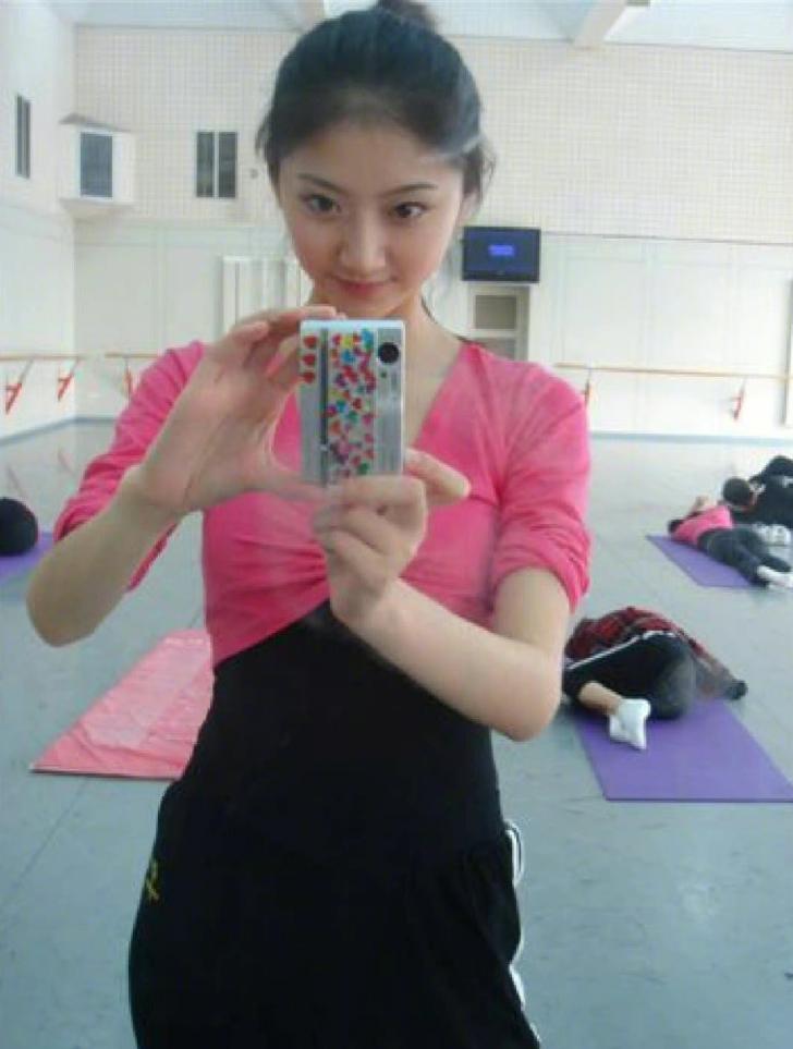 景甜在大学期间的练功照,水汪汪的大眼睛,像出水芙蓉,清纯可人.