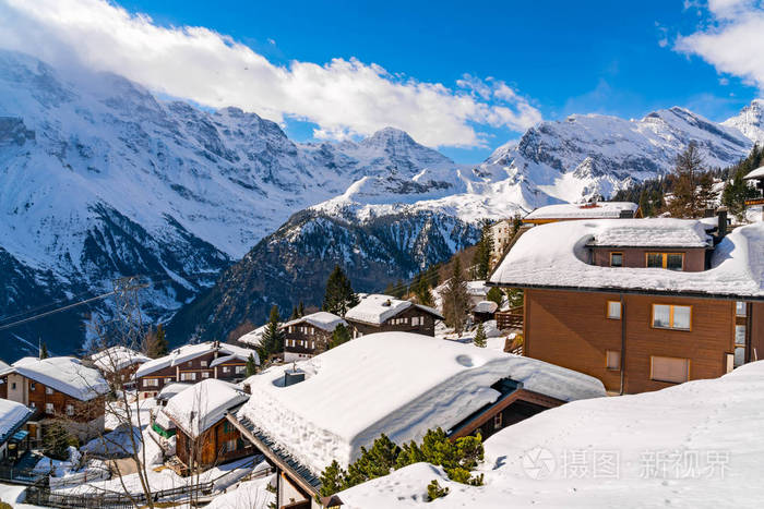 雪山房屋景物图片