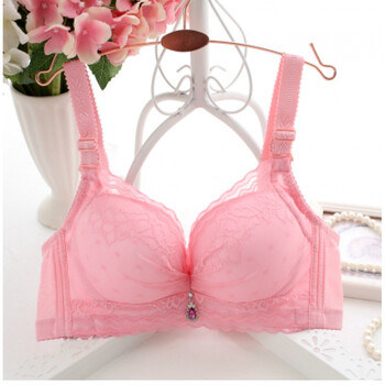 内衣女大码薄款bc杯蕾丝性感文胸罩聚拢上托 粉红色【四排扣蕾丝款】