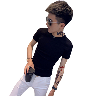 社会精神小伙短袖男修身翻领半袖社会人快手红人网红同款短袖t恤