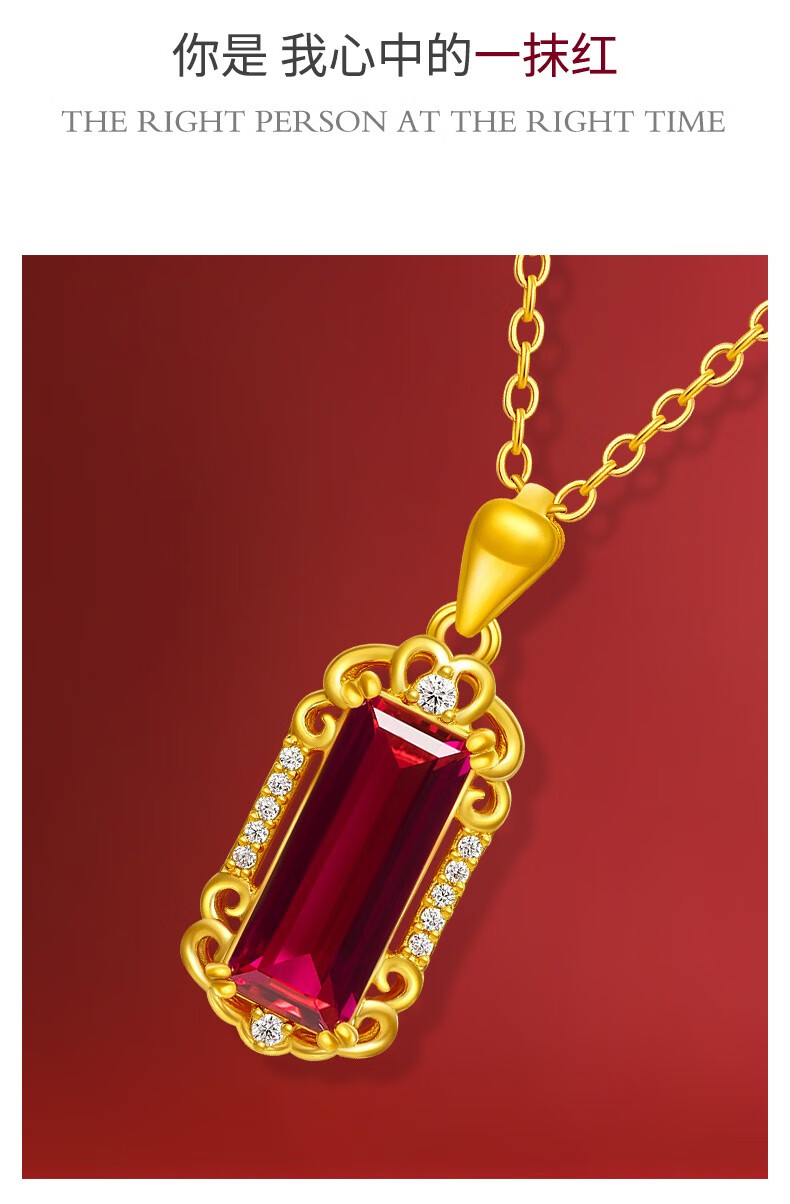 翡德丽高端品牌珠宝永恒之心新款吊坠心形红宝石金项链时尚年轻金女