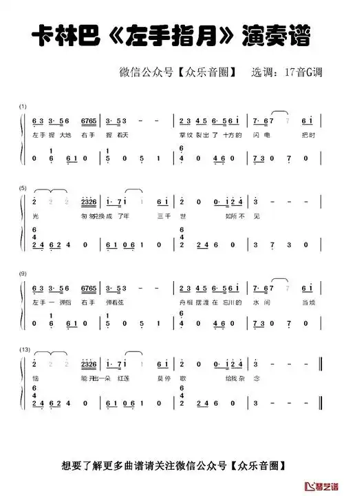 左手指月古筝谱原创古筝曲谱喻江作词萨顶顶作曲