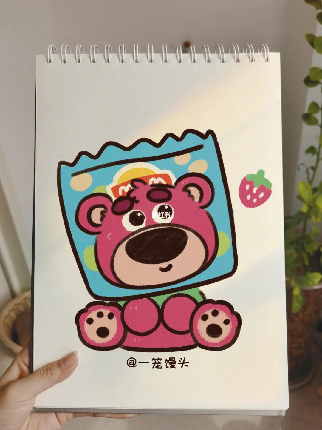 草莓熊简笔画彩铅卡通手绘画动物绘画过程