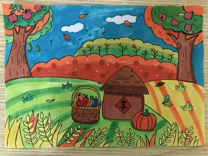 秋天秋天主题画秋天儿童画秋收