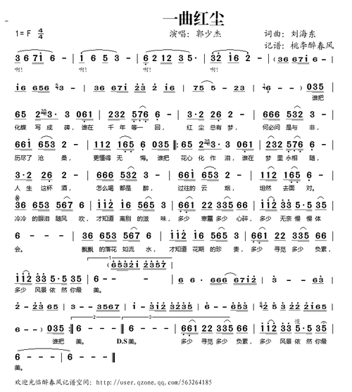 一曲红尘简谱-郭少杰演唱-刘海东/李凯稠词曲1