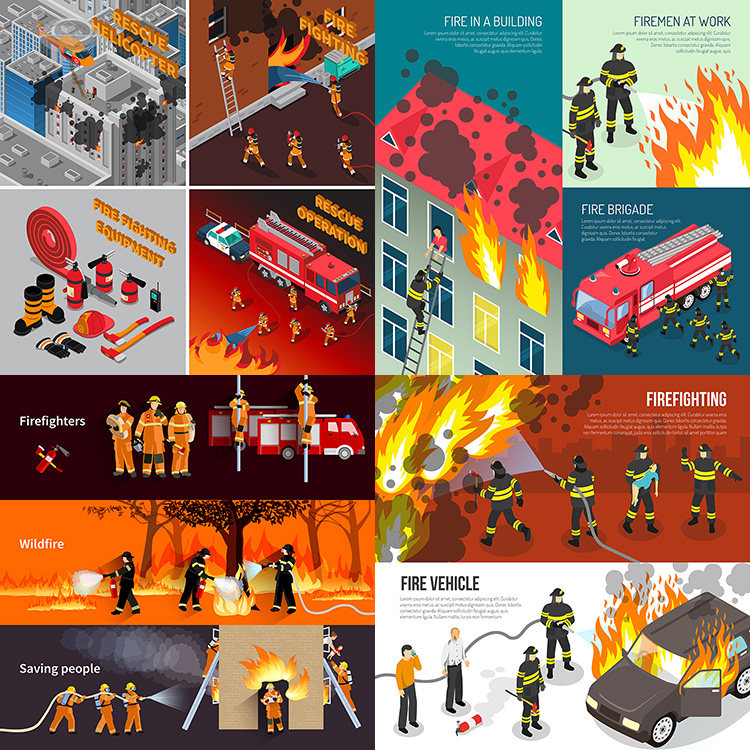 趣味灭火消防员矢量素材下载