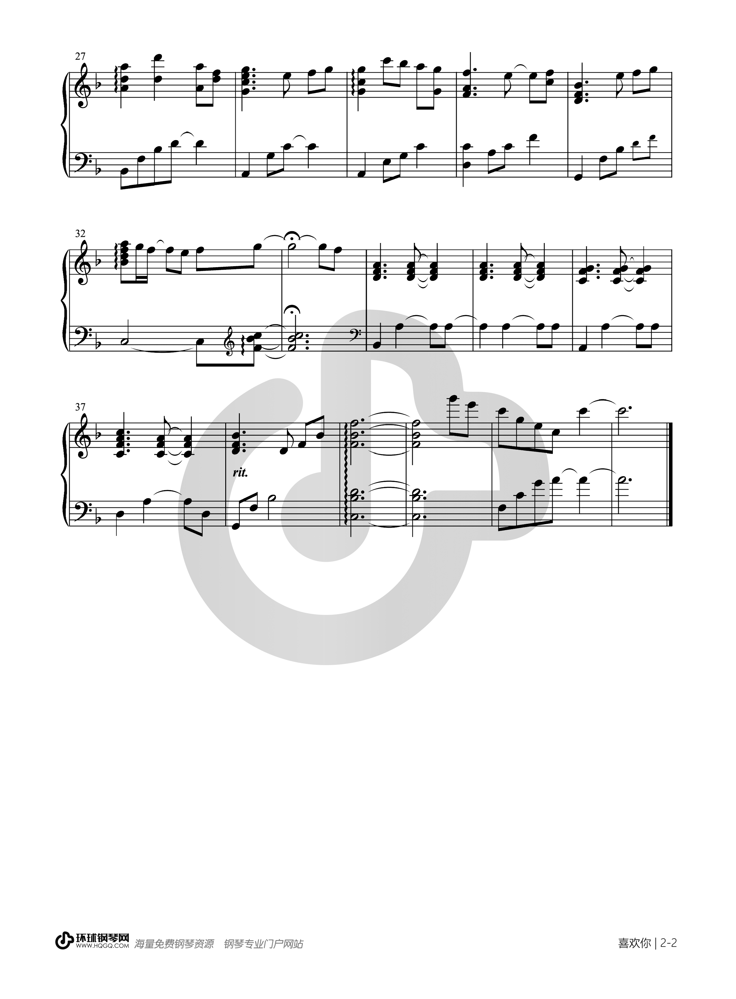 钢琴谱:喜欢你