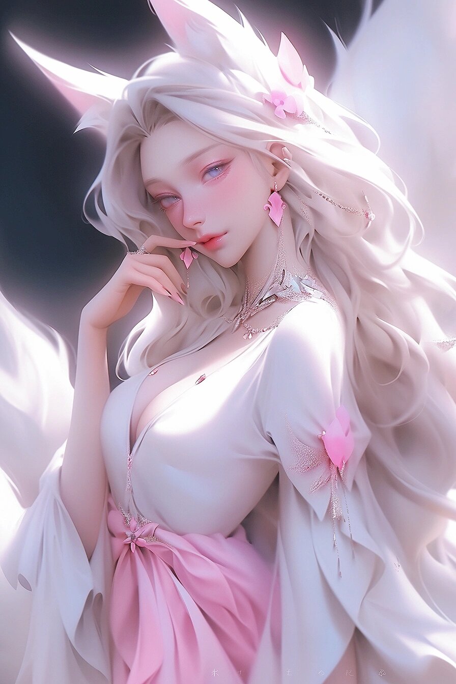 插画壁纸07妖媚性感小白狐 狐狸精 妖精