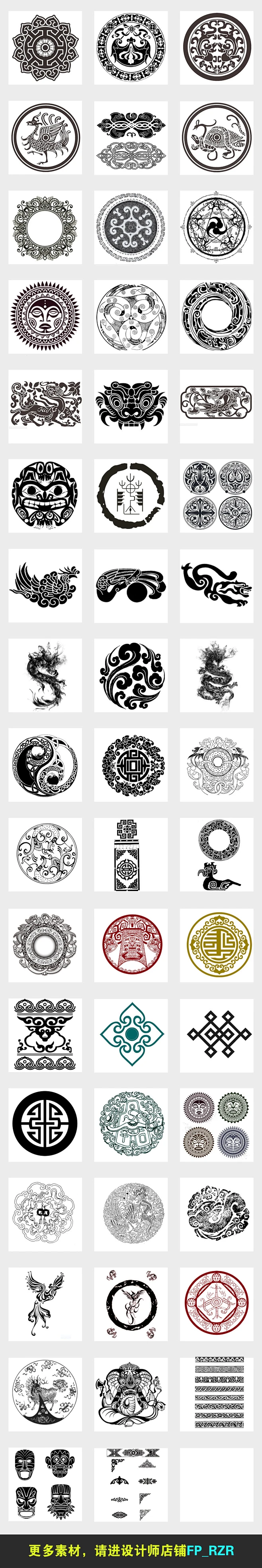50款中国风黑色民族风圆形复古花纹图腾图案png装饰素材