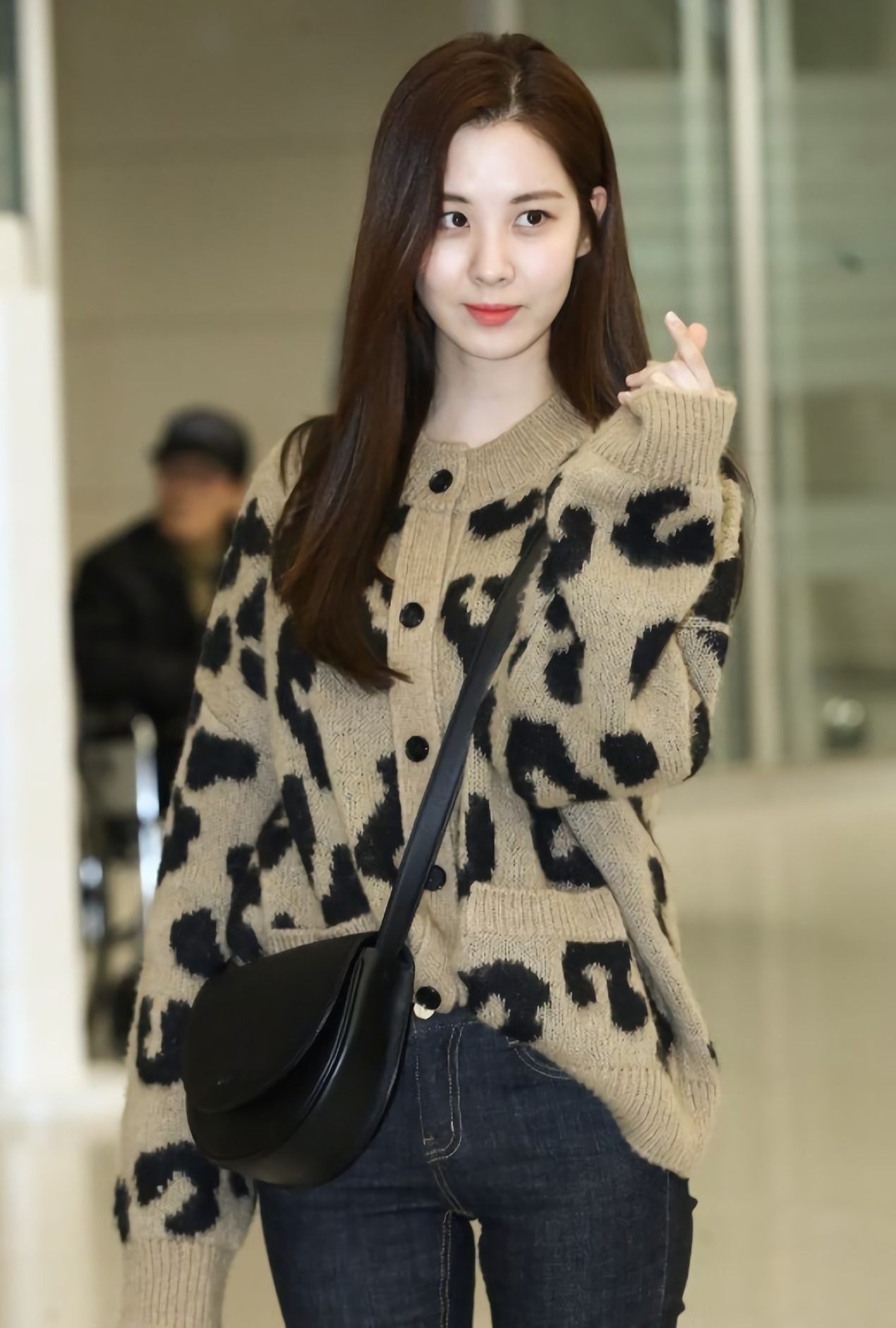 少女时代徐贤穿着咖色高领毛衫现身机场打造冬日少女休闲范儿