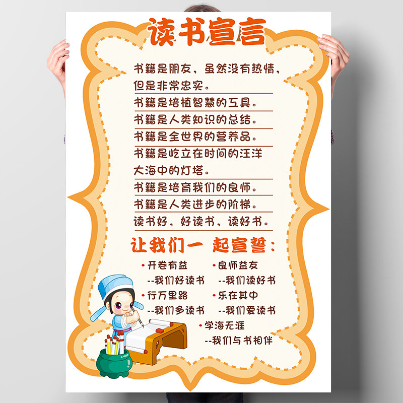 读书宣言九个阅读好习惯图书室小学教室班级布置装饰文化墙贴标语