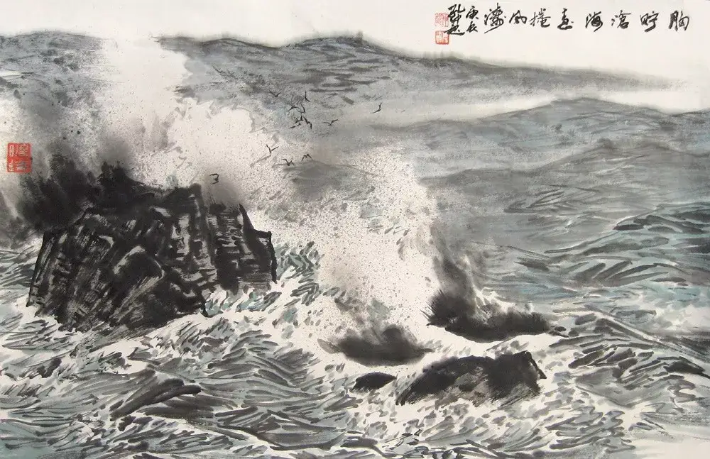 钱塘江里的弄潮儿山水画大家孔仲起