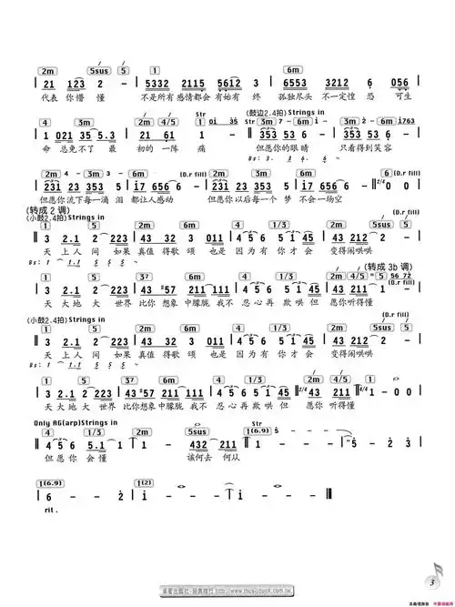 王菲演唱_林夕/中岛美雪词曲_吉他谱_钢琴谱_简谱
