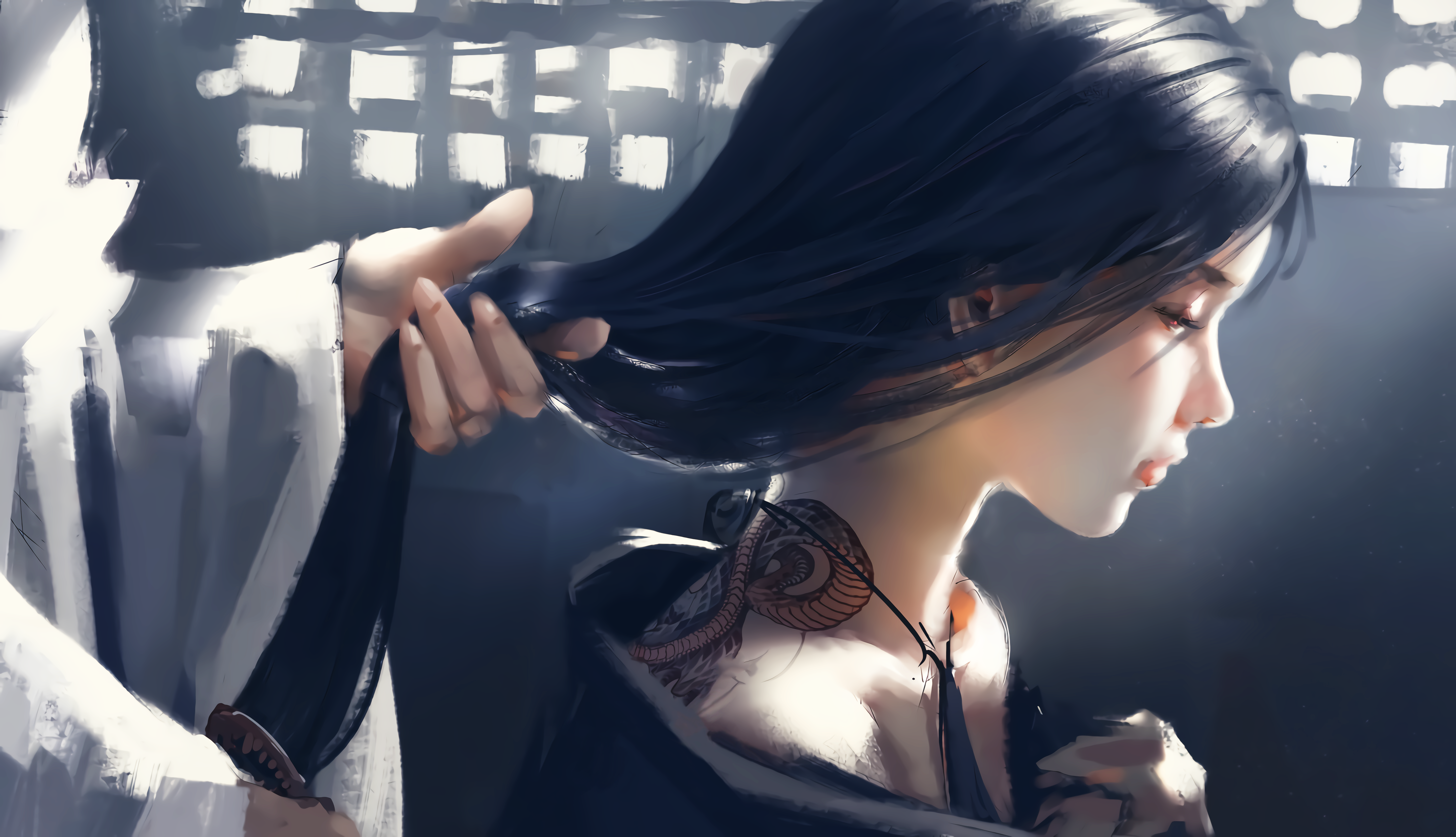 黎明风景女子后背唯美插画艺术2k壁纸鬼刀风玲壁纸