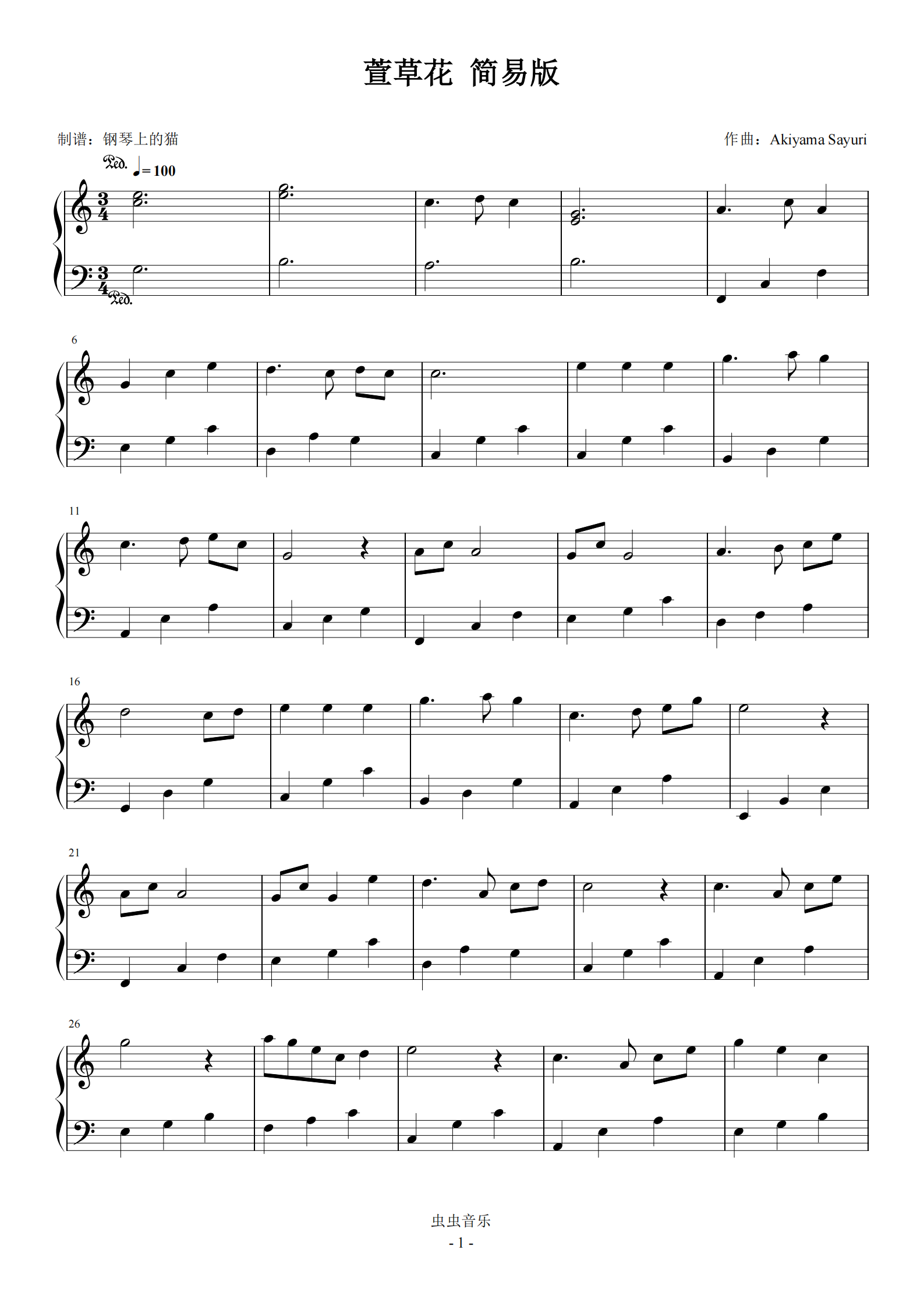 萱草花钢琴谱,难度3 #钢琴 #五线谱 #钢琴谱 #萱草花 - 抖音