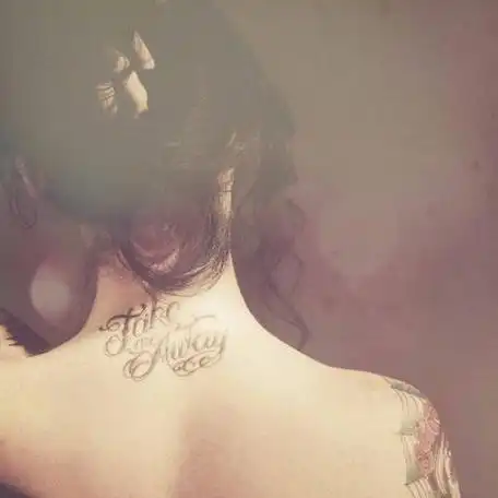 性感女孩锁骨上的简单英文纹身