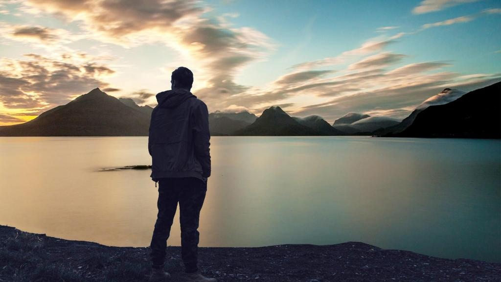 夕阳下,孤独的背影