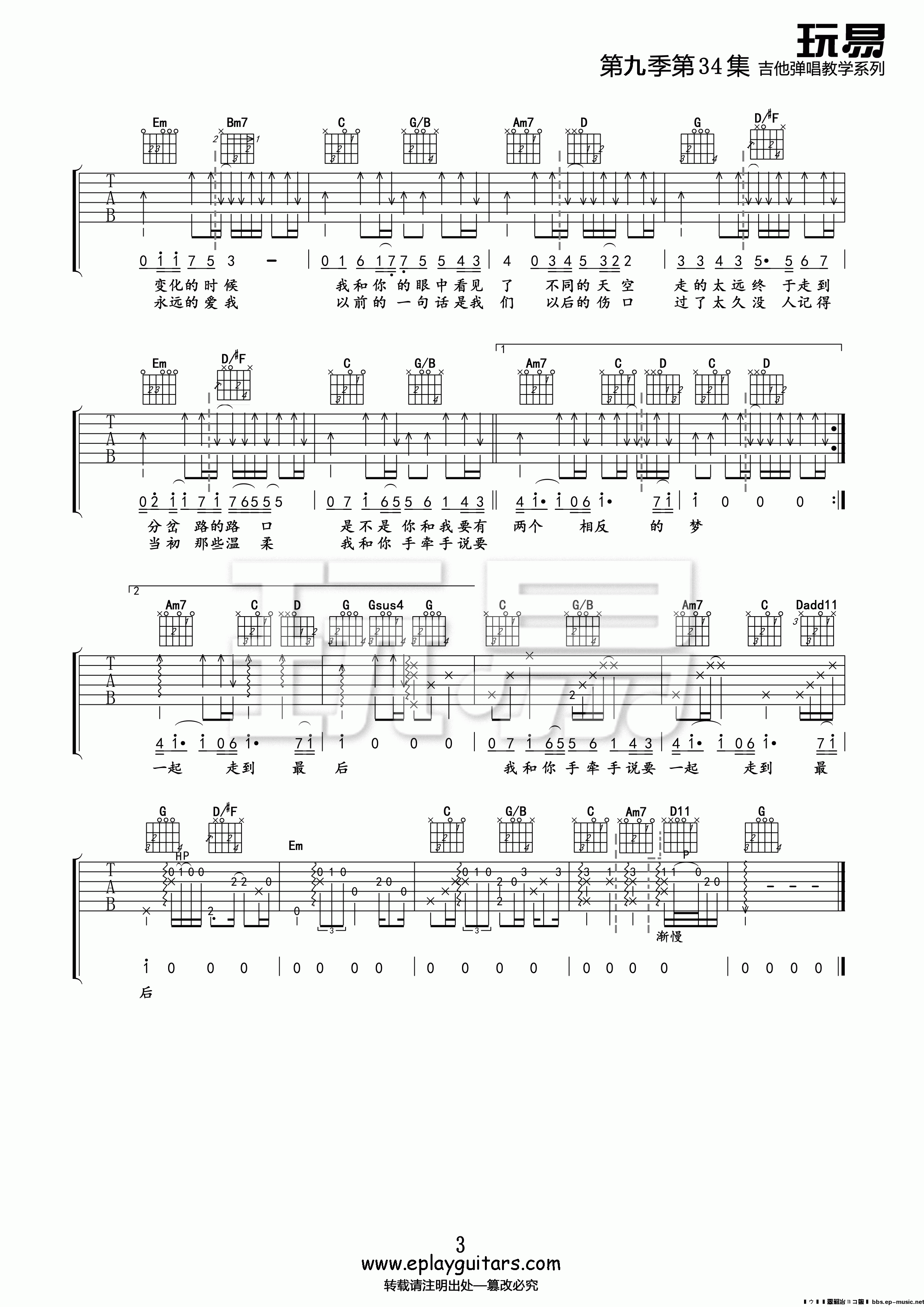 三人游吉他谱c调_方大同三人游吉他六线谱 吉他谱