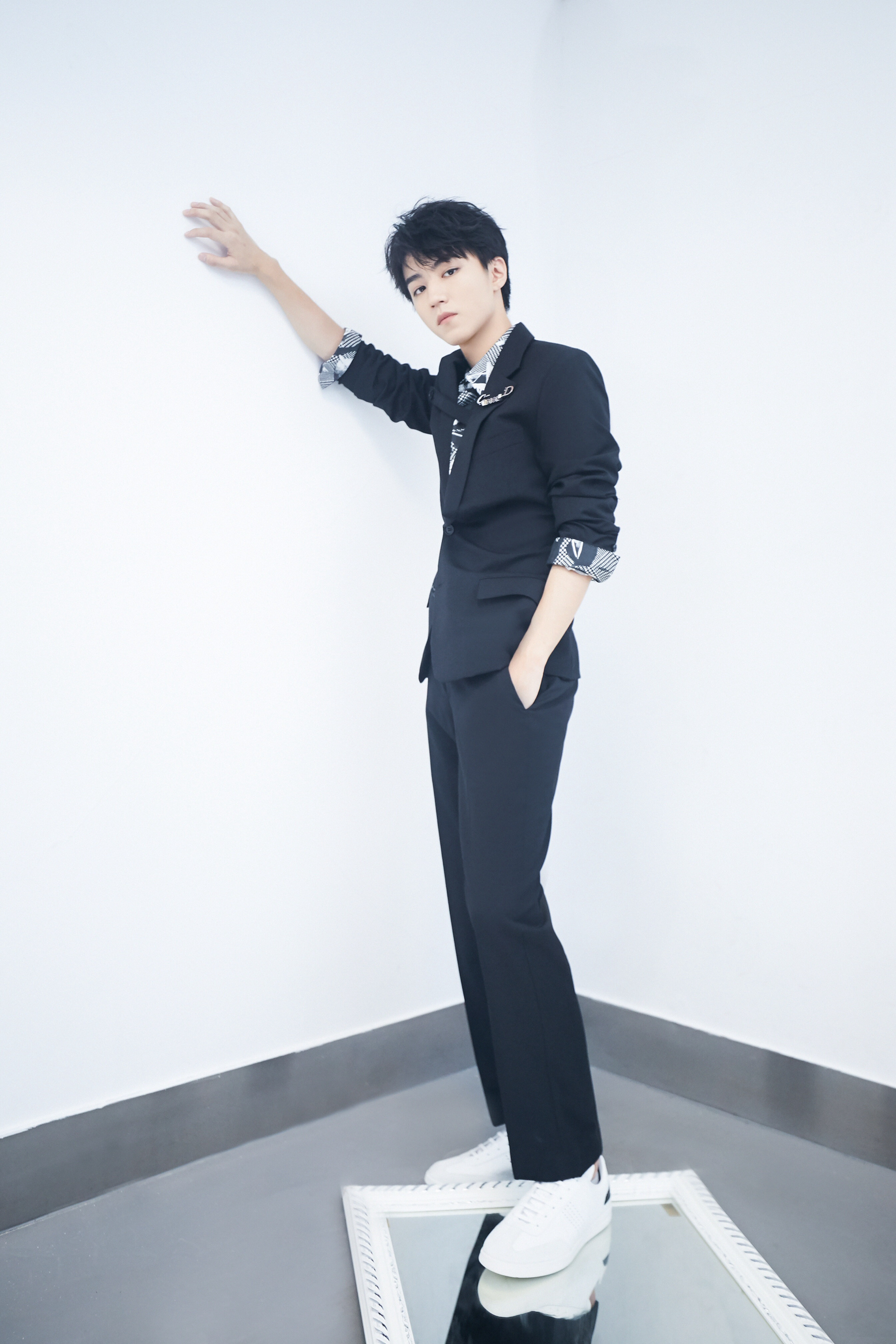 王俊凯黑色西装随拍来啦修长身材衬托优越比例