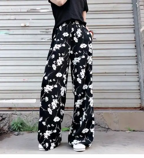 花裤子夏季女薄款宽松阔腿裤热卖单品,花裤子夏季女薄款宽松阔腿裤