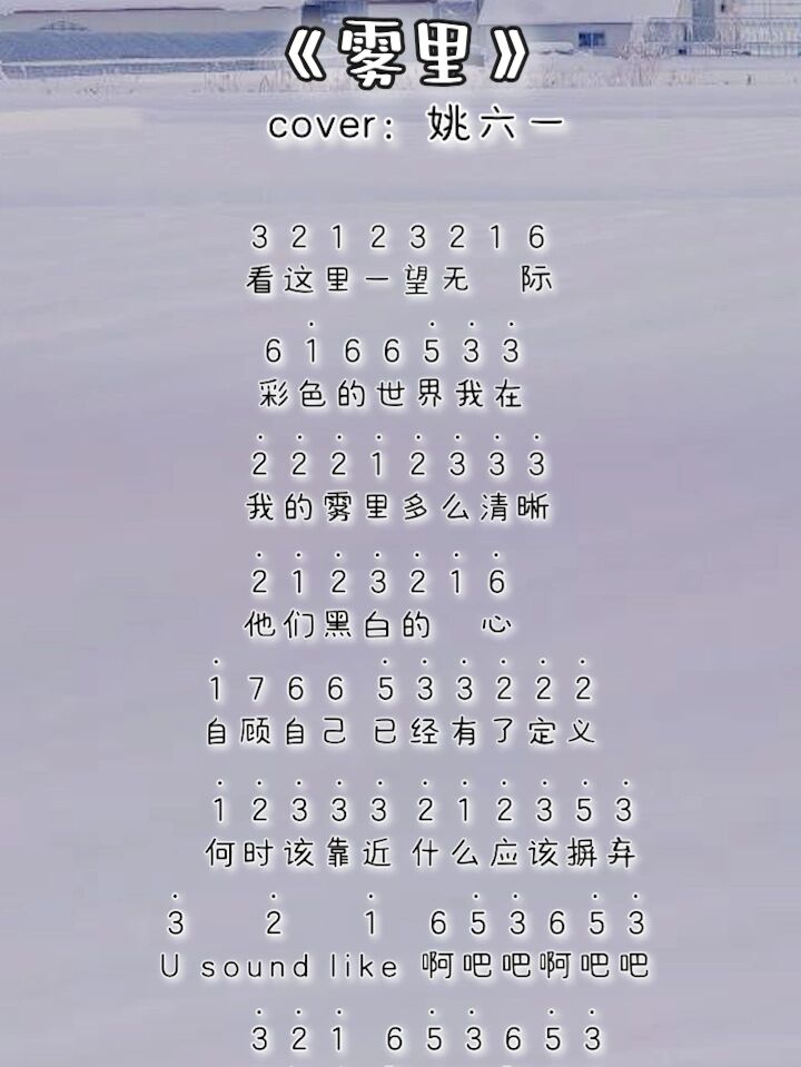 姚六一《雾里》钢琴五线谱 双手简谱第1张