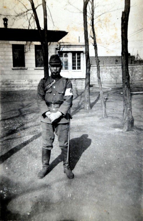 1937年日本士兵站宪兵队门前合影双手抄口袋一副小人得志嘴脸