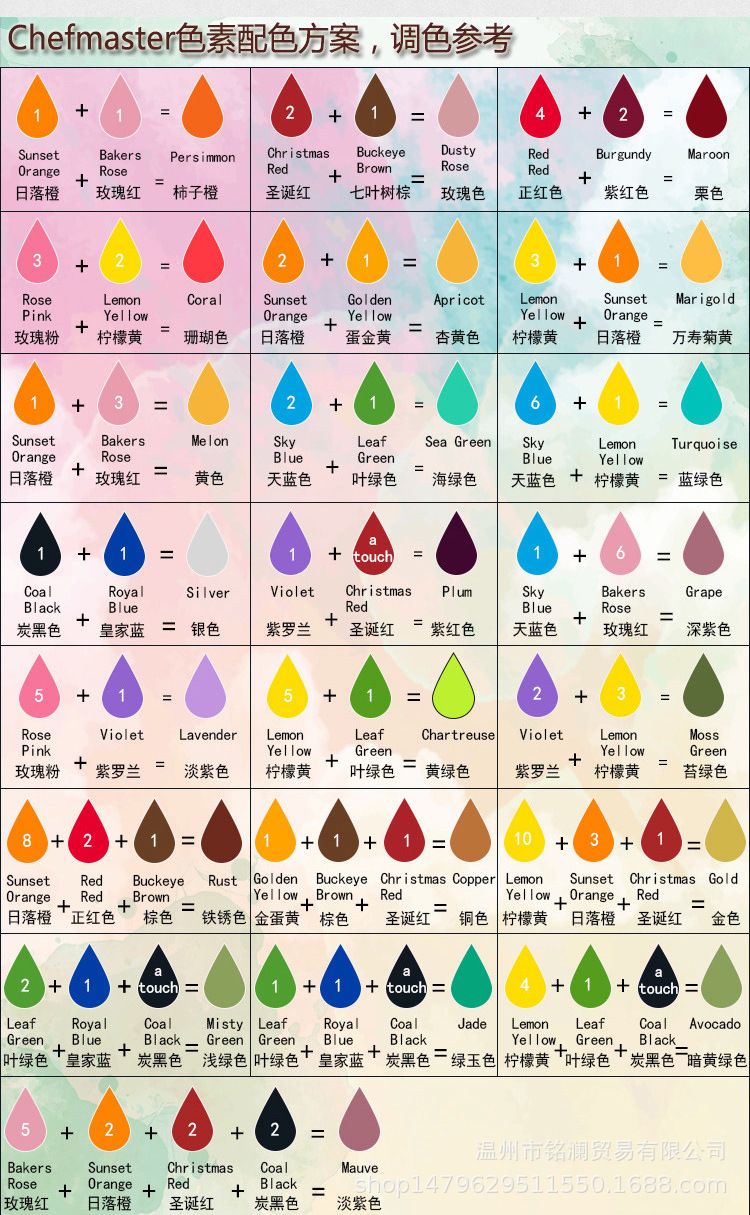 各种颜色调配公式一览表