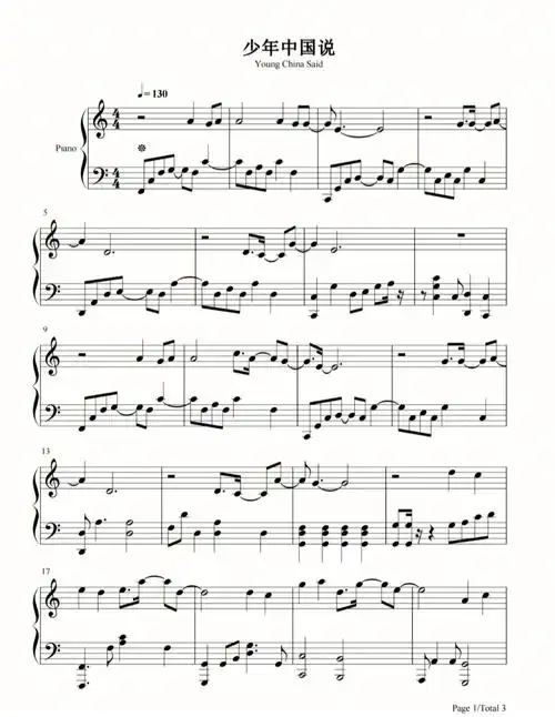 少年中国说钢琴谱 张杰-少年中国说五线谱