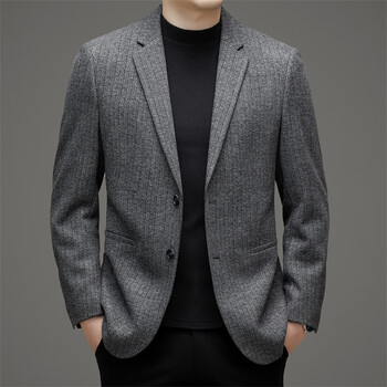男款灰色成熟稳重长袖西装