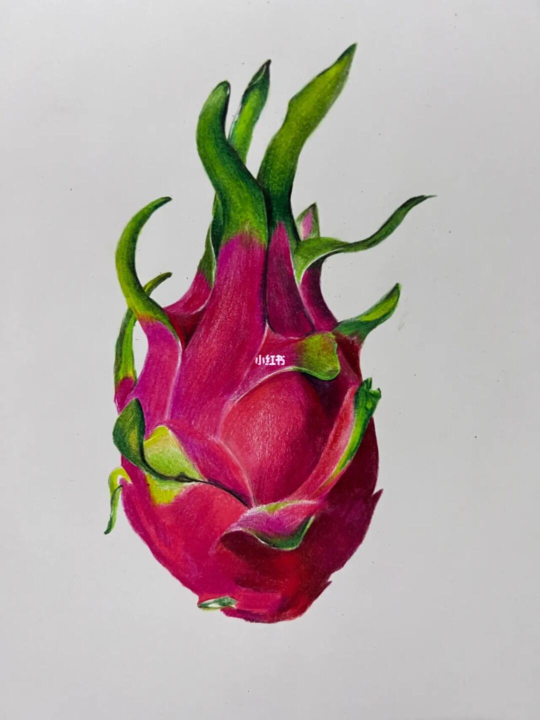 彩铅水果画丨教你怎么画一个红彤彤的彩铅火龙果!_版权_网络_来源