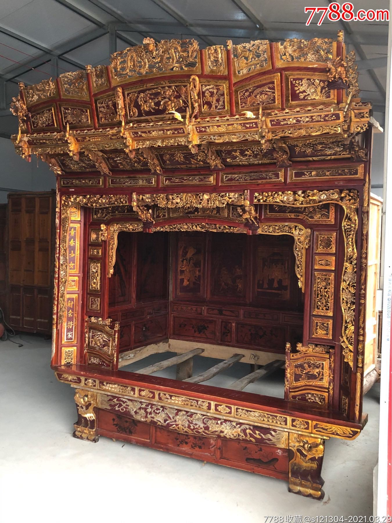民国松柏木千工床老床古董床老家具-价格:8500元-se79204971-木床/木