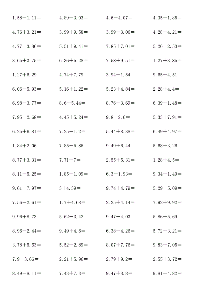 四年级小数加减法计算练习
