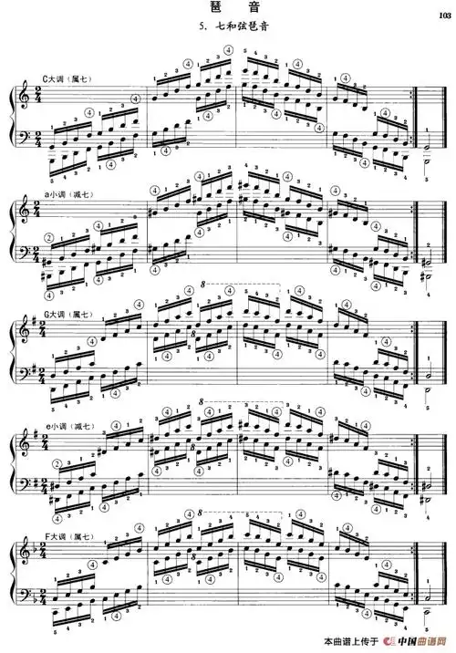 第八级1c大调主三和弦琶音中央音乐学院钢琴业余考级教程79级