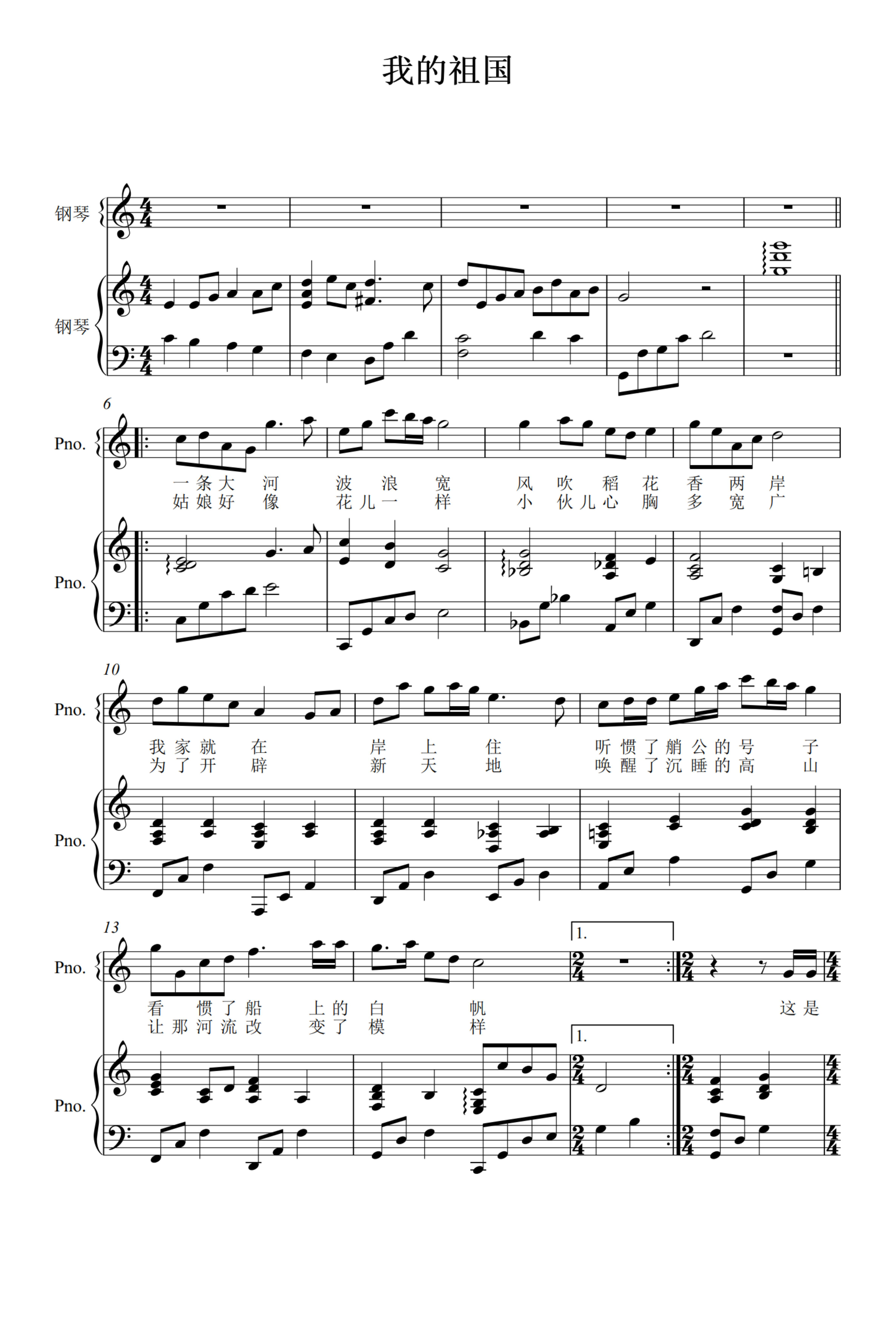 《祖国有我》合唱钢琴伴奏五线谱 《祖国有我》合唱钢琴伴奏五线谱