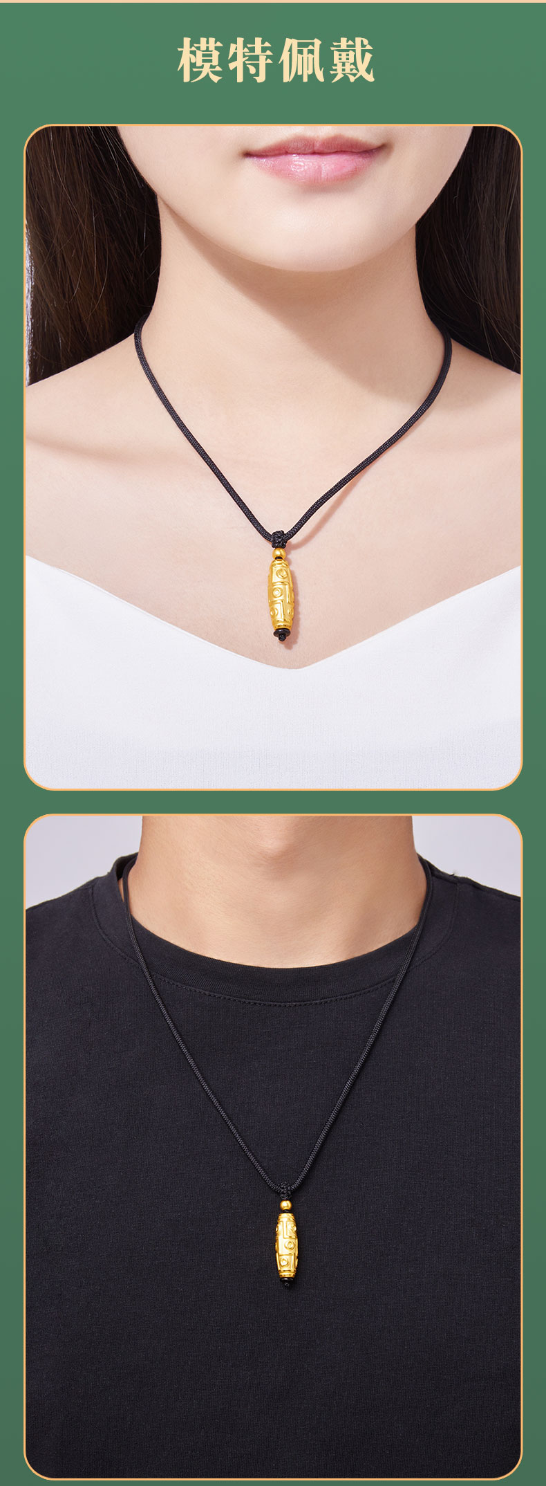 月斐珠宝古法黄金算盘吊坠编绳挂绳项链999足金搭配珍珠福字送妈妈女