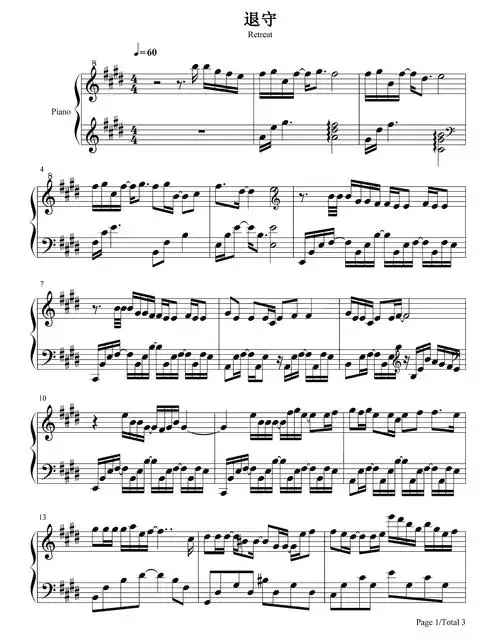 《退守》钢琴简谱_钢琴_简谱_钢琴简谱_娱乐_音乐