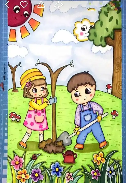 312植树节绘画电子版模版保护树木爱护环境植树节儿童画zsj01
