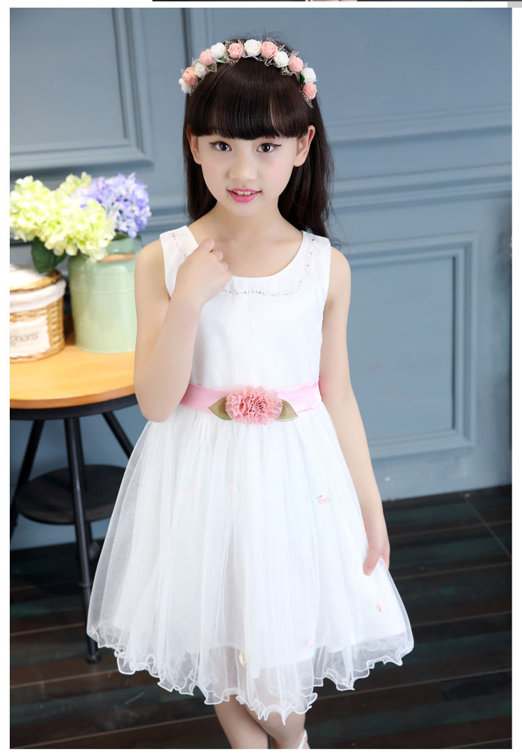 女宝公主裙夏季时髦女童连衣裙夏大小童韩版时尚薄款网纱蕾丝纯色