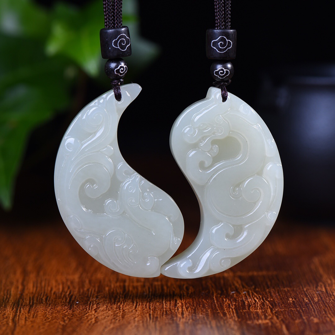 天然新疆和田羊脂玉龙凤呈祥情侣吊坠.9393901588一对 - 抖音