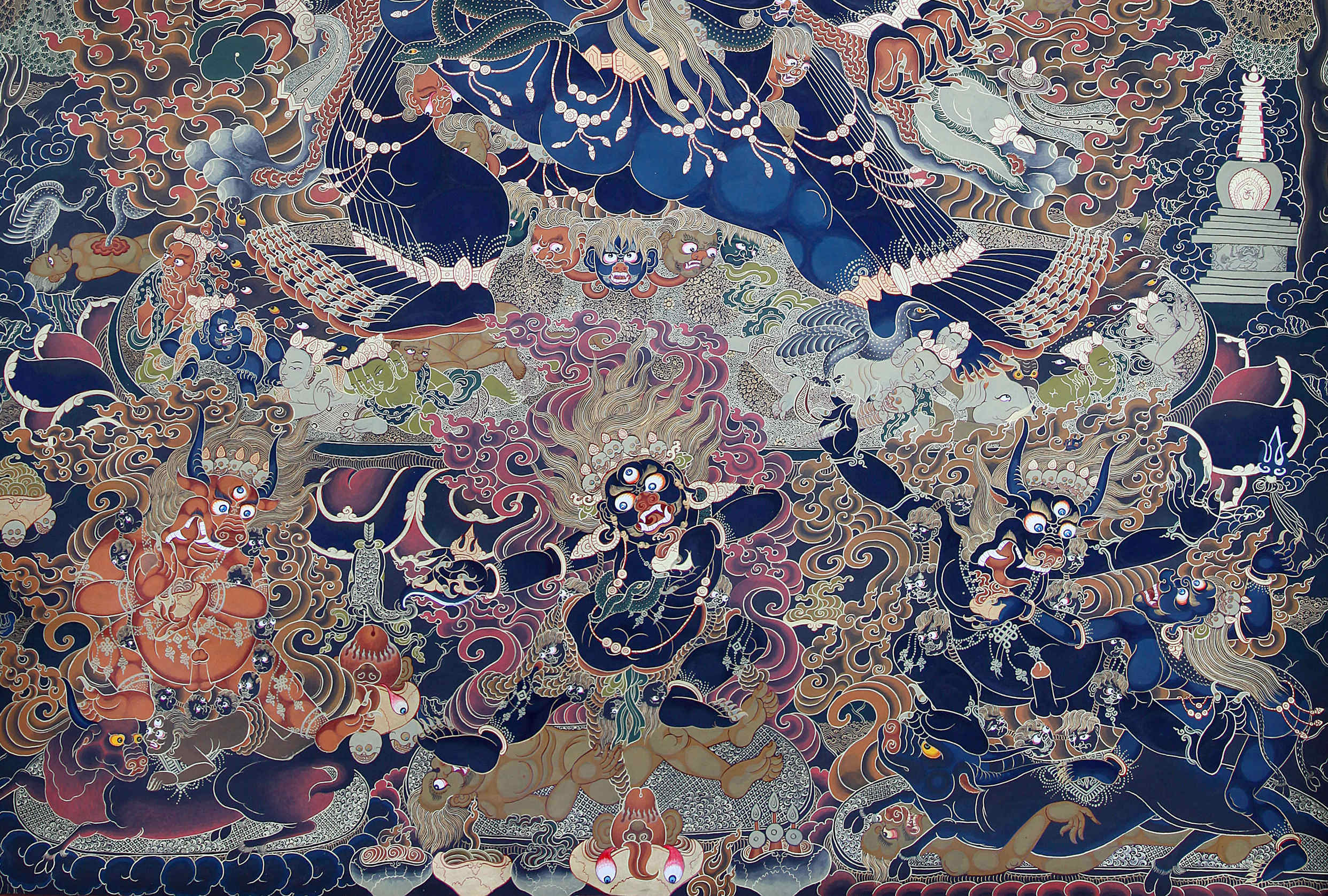 大威德金刚唐卡 勉唐画派作品 天鼓雷音唐卡艺术中心出品