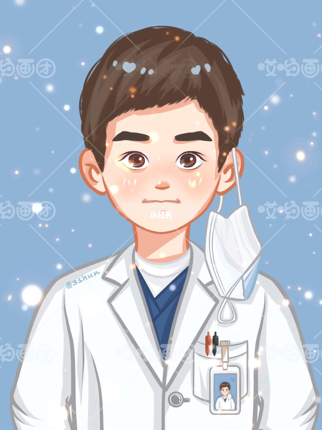 手绘帅气英俊医生