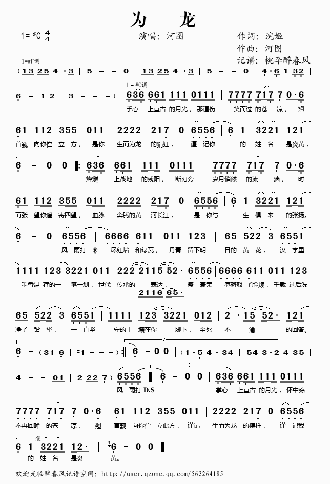 为龙(河图)原版 有试听 钢琴双手简谱 钢琴谱简谱
