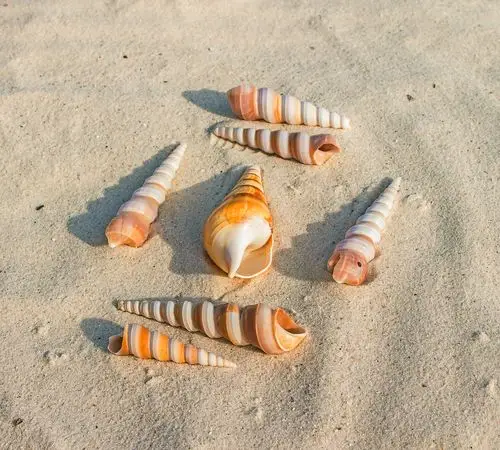 沙滩上漂亮的贝壳海螺海星摄影图片